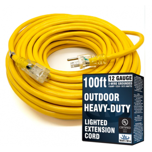 WatssWire, Cable de extensión resistente, 12Awg SJTW de 100 pies