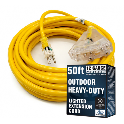 Watt`s Wire, Cable de extensión multi-tap con toma de tierra de 12 AWG 50 pies SJTW (amarillo)