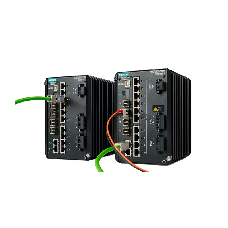 RUGGEDCOM RST916P y RST916C son switches Ethernet compactos de capa 2 de alta densidad de puertos y 10 gigabits. Ofrecen conectividad fiable para aplicaciones de alto ancho de banda en infraestructuras críticas como la electricidad, el transporte y el petróleo y gas.