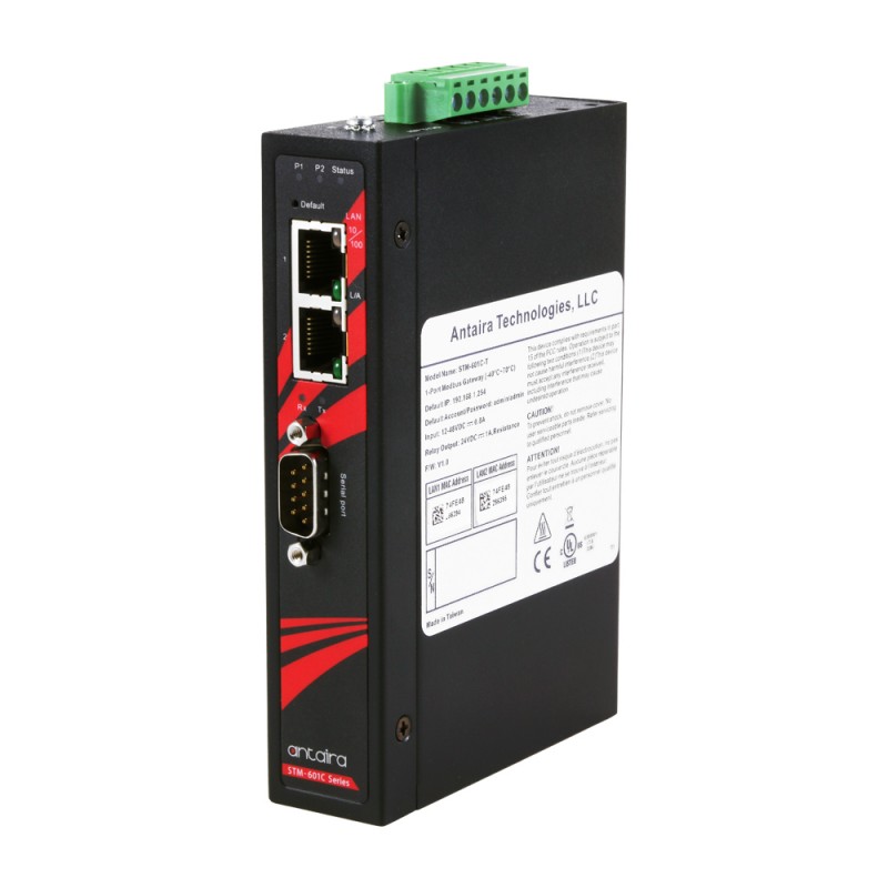 Antaira Technologies-STM-601C es una pasarela industrial MODBUS que permite a los dispositivos MODBUS RTU/ASCII heredados operar en una red MODBUS TCP. Se puede configurar como maestro en serie MODBUS o esclavo para comunicarse con el esclavo o amo de MODBUS TCP. El STM-601C cuenta con dos puertos Ethernet independientes y direcciones MAC para proporcionar redundancia y fiabilidad. Estos dispositivos proporcionan una forma económica de conectar los dispositivos MODBUS RTU/ASCII a redes accesibles en cualquier parte del mundo.