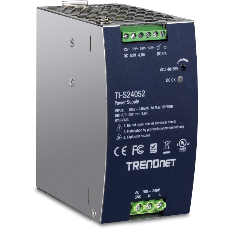 Trendnet, TI-S24052, Fuente de alimentación DIN-Rail de 240W, 52V DC, 4,61A, de AC a DC con función PFC