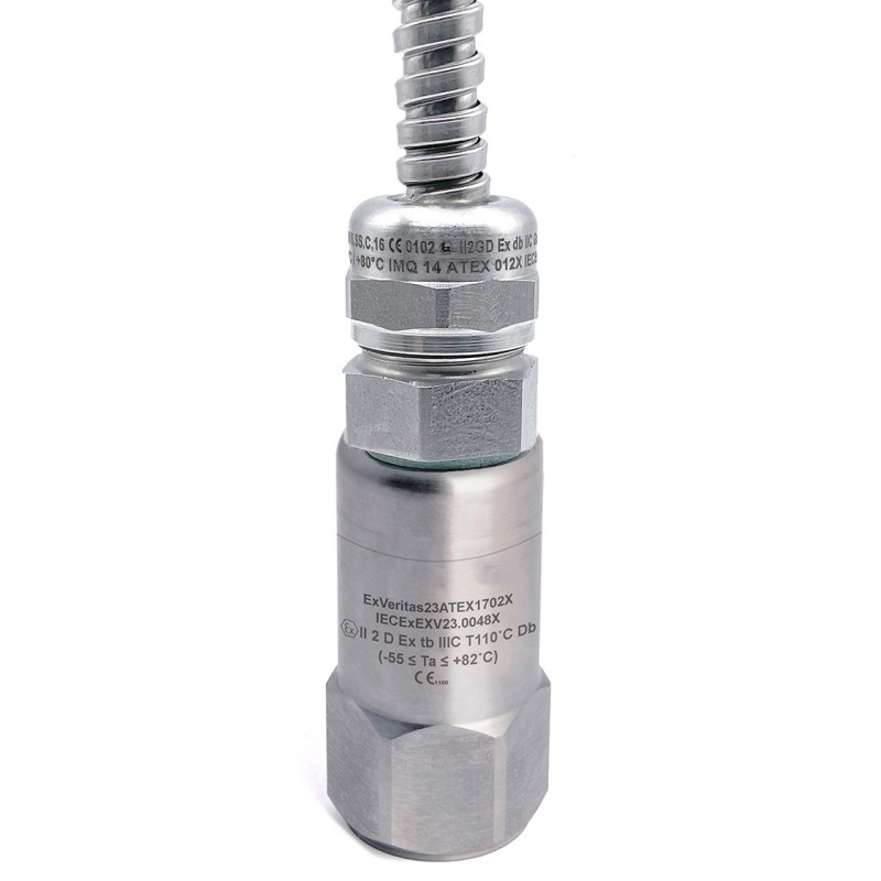 Hansford Sensors, HS-150tb – Salida superior – Cable PUR integral ExTb Acelerómetro intrínsecamente seguro