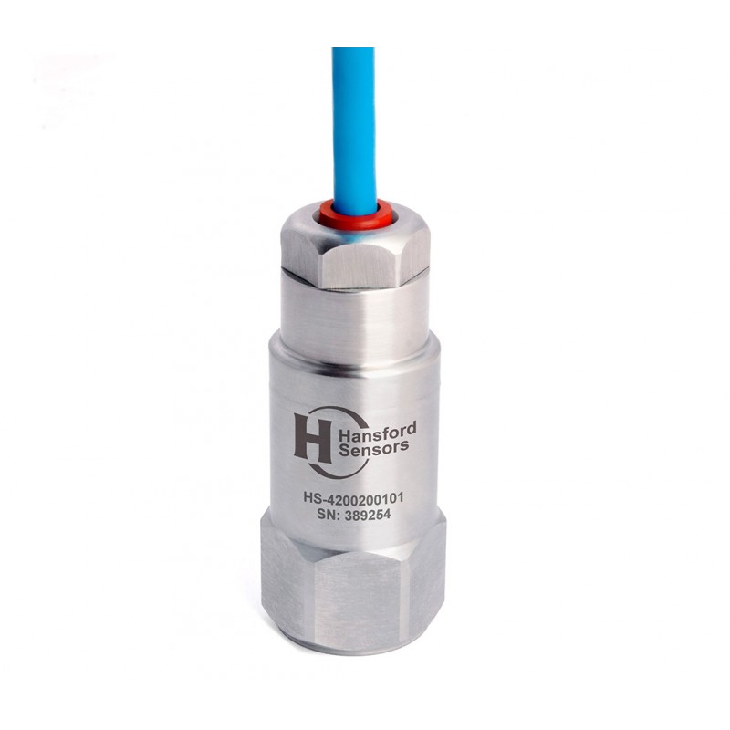 Hansford Sensors, HS-420 - Salida superior - Cable PUR integral Acelerómetro de salida de 4-20 mA
