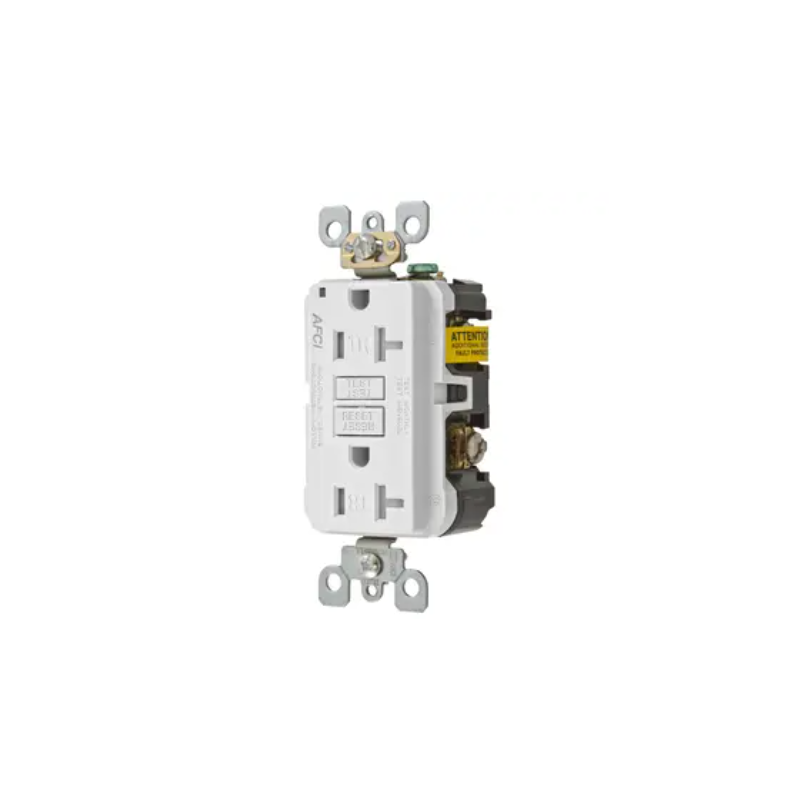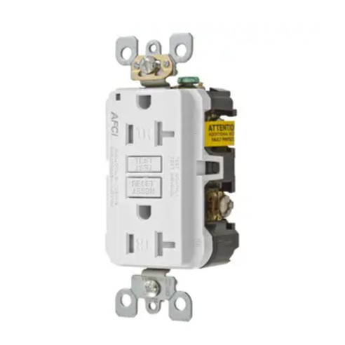 Hubbell, Receptáculo AFCI de autoprueba resistente a la manipulación por falla de arco, 20A, blanco