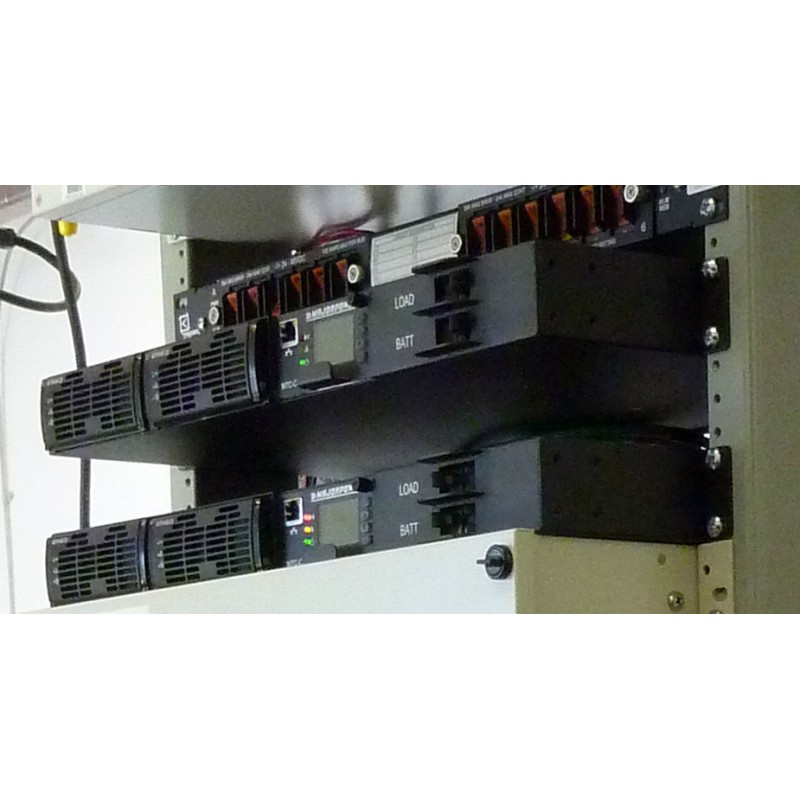 Este sistema de alimentación está diseñado con el interruptor de circuito de salida integrado de 2 polos, operación de acceso frontal. El bloque de alimentación de dos polos para conexiones de tornillo seguras se encuentra en la parte posterior del sistema. El disyuntor separa los circuitos positivo y negativo entre la conexión de salida del sistema y el bus rectificador. Debido a varias aplicaciones, el disyuntor está etiquetado como "carga" para indicar cualquier carga de salida con respecto al sistema de energía, ya sea un bus común, cargas activas o un sistema combinado de carga de batería.