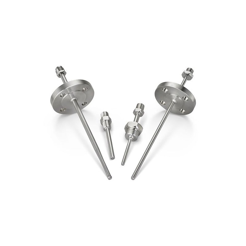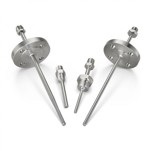 Fabricado con ductos metálicos y sellados con una tapa ciega soldada en la punta, el tubo de protección Rosemount 114P utiliza un sello del proceso que se consigue mediante una brida o un acoplamiento mecanizado y roscado soldado a lo largo del ducto. Esta solución de termopozo con tubo de protección se utiliza normalmente en las industrias química y farmacéutica y está diseñada para permitir una respuesta temporal rápida o para aplicaciones en las que se necesitan grandes longitudes de inmersión.