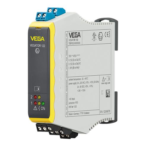 El VEGATOR 122 es un controlador para la detección de nivel con salida de relé para los interruptores de nivel vibratorios VEGASWING, VEGAVIB y VEGAWAVE con versión electrónica "Two-wire 8/16 mA". Con este instrumento se pueden resolver tareas de control simples. Las aplicaciones típicas son funciones de monitoreo como protección contra desbordamiento o funcionamiento en seco.