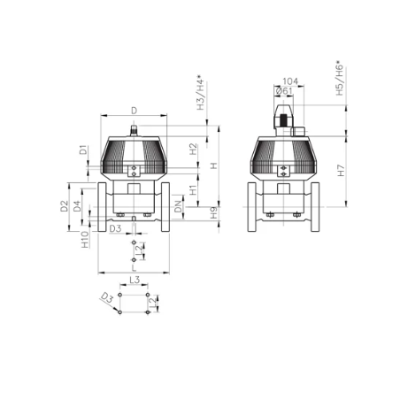 Dimensión de conexión: ISO 7005 / EN 1092 / DIN 25 PN10 / BS4504