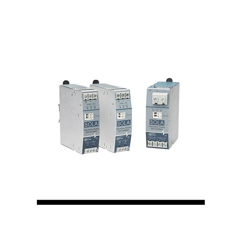 Los módulos de redundancia de la fuente de alimentación (RED) respaldan el funcionamiento con una fuente de alimentación redundante mediante la monitorización continua del estado de dos fuentes de alimentación conectadas a una sola carga. Los módulos RED tienen certificación internacional, para entornos industriales exigentes y ubicaciones peligrosas. El diseño MOSFET de los módulos RED genera menos calor que los diseños tradicionales con base de diodos. Los LED de diagnóstico ayudan a equilibrar la carga entre las dos fuentes de alimentación. La combinación de estas funciones prolonga la vida útil tanto de las fuentes de alimentación como de los componentes ubicados en la misma caja. Estas unidades compactas funcionan con fuentes de alimentación SolaHD™ series SDN-D, SDN-C y SDN-P.