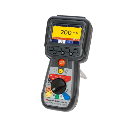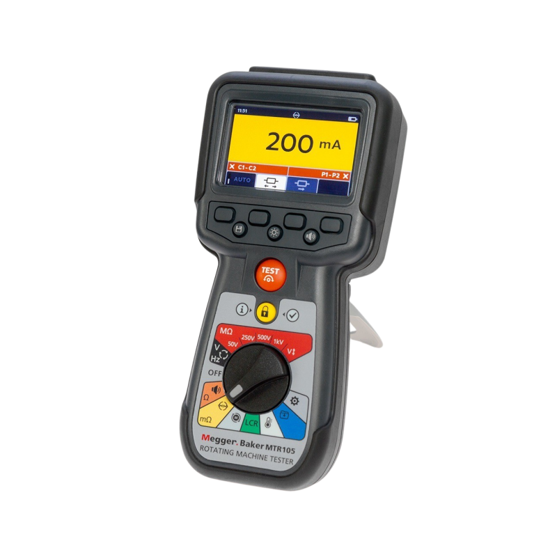 El MTR105 es un medidor de máquinas rotativas específico que combina la experiencia acreditada de Megger en resistencia del aislamiento (IR) con mediciones avanzadas de baja resistencia, capacitancia, inductancia y rotación en un solo equipo portátil. Proporciona una visión integral de la salud del motor, permitiéndole evaluar los devanados, las conexiones y el estado general con precisión y fiabilidad. Diseñado para equipos de producción, servicio y mantenimiento, el MTR105 permite tomar decisiones rápidas y fiables durante todo el ciclo de vida de los activos.