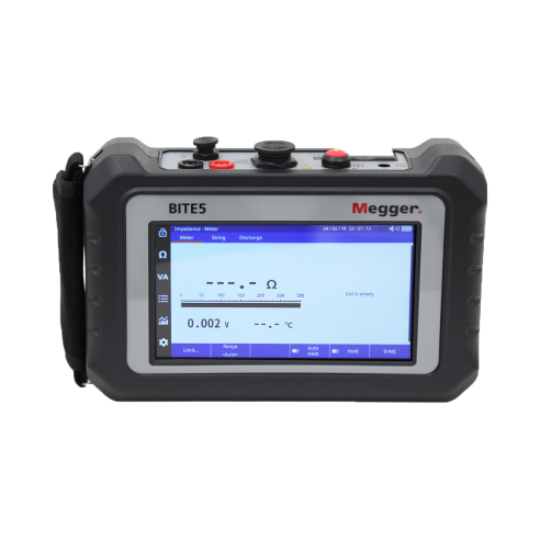En el caso de las mediciones de impedancia, podrá establecer criterios de Pasa/No pasa, advertencias y límites de fallo para la impedancia y la tensión. En el caso de las mediciones de descarga (y de recarga solo con el BITE5 Advanced), las mediciones se registran durante todo el periodo de descarga o recarga. Las tendencias pueden visualizarse en la pantalla táctil del equipo, y los resultados almacenados pueden descargarse mediante un cable USB o una tarjeta SD para su posterior análisis y archivo. También se admite la transferencia inalámbrica de datos al paquete de software PowerDB de Megger.