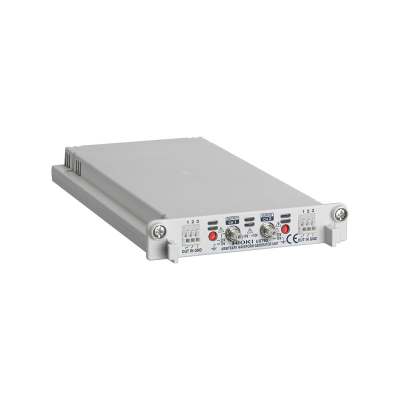La unidad generadora de forma de onda arbitraria U8793 es un módulo plug-and-play para Hioki Memory Adquisidor para crear un generador de funciones, un generador de forma de onda arbitraria y medición de forma de onda en un solo dispositivo. Observe fácilmente las formas de onda mientras varía las condiciones de prueba, como cambiar la amplitud y la frecuencia de la señal, así como programar varias formas de onda para que salgan en orden.