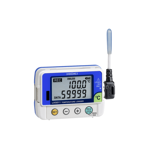 Los registradores de datos compactos de 1 o 2 canales de Hioki cuentan con una memoria de 60 000 conjuntos de datos/canales para medir la temperatura, la humedad, el voltaje o las señales de instrumentación. El LR5011 registra la temperatura en 1 canal en intervalos de tan solo 1 segundo.