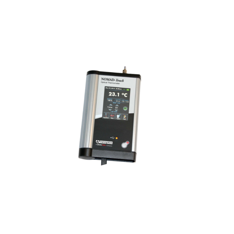 El NOMAD-Touch es un termómetro de fibra óptica portátil de un solo canal diseñado para mediciones rápidas y precisas de temperatura utilizando sondas Neoptix GaAs. Cuenta con una pantalla táctil a color de 3,5 pulgadas, conectividad USB y baterías recargables integradas. Ideal para diagnósticos móviles, pruebas de sonda y entornos donde la inmunidad a interferencias electromagnéticas es crítica.