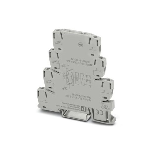 PLC-INTERFACE como relé electrónico de carga de inversión, compuesto de borne de base PLC-BSC.../21 con conexión por tornillo y circuito integrado, para controlar motores DC con indicador luminoso y circuito de protección, salida: 10 ... 30 V DC/2 A