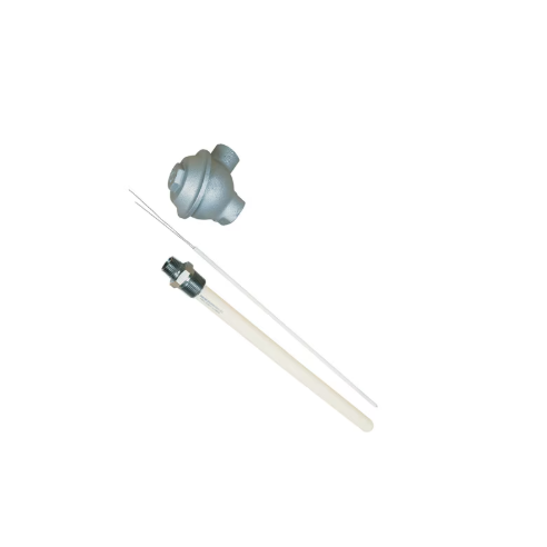 Los termopares de alta temperatura cuentan con sondas de platino tipo R, S o B con tubos de protección cerámicos y cabezales de hierro fundido. Diseñados para temperaturas extremas de hasta 1650 °C (3000 °F), incluyen un cabezal de protección, un bloque de terminales y un tubo cerámico. Las opciones configurables permiten personalizar la longitud de la sonda, el calibre del cable y el diámetro del tubo para aplicaciones industriales que requieren mediciones fiables de alta temperatura.