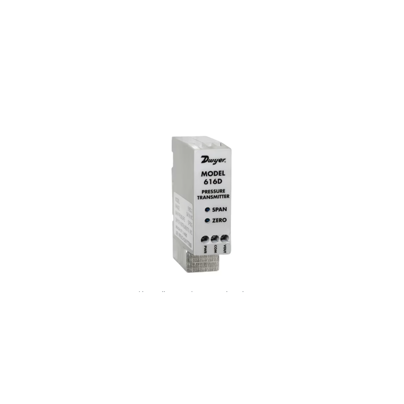 El transmisor de presión diferencial serie 616D detecta la presión del aire y gases compatibles y envía una señal de salida estándar de 4 a 20 mA o de 0 a 10 VCC. La carcasa del 616D está diseñada específicamente para su montaje en un riel DIN de 35 mm en un panel. Este estilo de montaje permite montar varias unidades juntas, lo que reduce el espacio necesario. Los controles de span y cero se utilizan para comprobar la calibración. No están diseñados para reajustar el rango. Su diseño de circuito versátil permite su funcionamiento en bucles de corriente de 2 hilos.