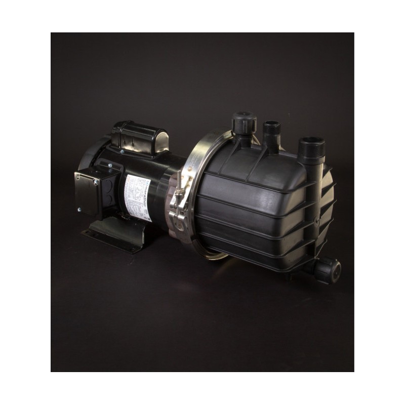 La bomba industrial SP-TE-7P-MD de March Pump es una bomba centrífuga de accionamiento magnético sin sello, ideal para aplicaciones como recirculación y transferencia de productos químicos, y sistemas de depuración. Genera un caudal máximo de 53 galones por minuto a 10 pies (3 metros) y su altura máxima es de 53 pies (23 psi). Cuando la SP-TE-7P-MD está completamente cebada, alcanza una altura de succión de 16 pies (4,8 metros) en 120 segundos con el diámetro máximo del impulsor. La altura máxima o equivalente es de 21 pies (6,4 metros). El extremo húmedo estándar (los materiales que entran en contacto con la solución) está compuesto de polipropileno, vitón, carbono y cerámica. La conexión de entrada es una rosca macho de 1-1/2 pulgadas (3,8 cm) y la de salida es una rosca macho de 1 pulgada (2,5 cm). Dispone de dos motores estándar. El primero es un motor monofásico de 1 caballo de fuerza, totalmente cerrado, refrigerado por ventilador, con voltaje de 60 Hz a 115/208/230 V y 50 Hz a 110/220 V. El segundo es un motor trifásico de 1 caballo de fuerza, totalmente cerrado, refrigerado por ventilador, con voltaje de 50/60 Hz a 230/460 V y 50 Hz a 190/380 V. Existen diferencias de rendimiento entre las opciones de hertz. La presión interna máxima que la bomba puede tolerar es de 40 PSI y la temperatura máxima del líquido es de 82 Celsius (180 Fahrenheit). La bomba centrífuga de accionamiento magnético March SP-TE-7P-MD es capaz de manipular productos químicos, ácidos y disolventes de corrosivos leves a altos. Para determinar si la March SP-TE-7P-MD es adecuada para su aplicación, póngase en contacto con March Pump.