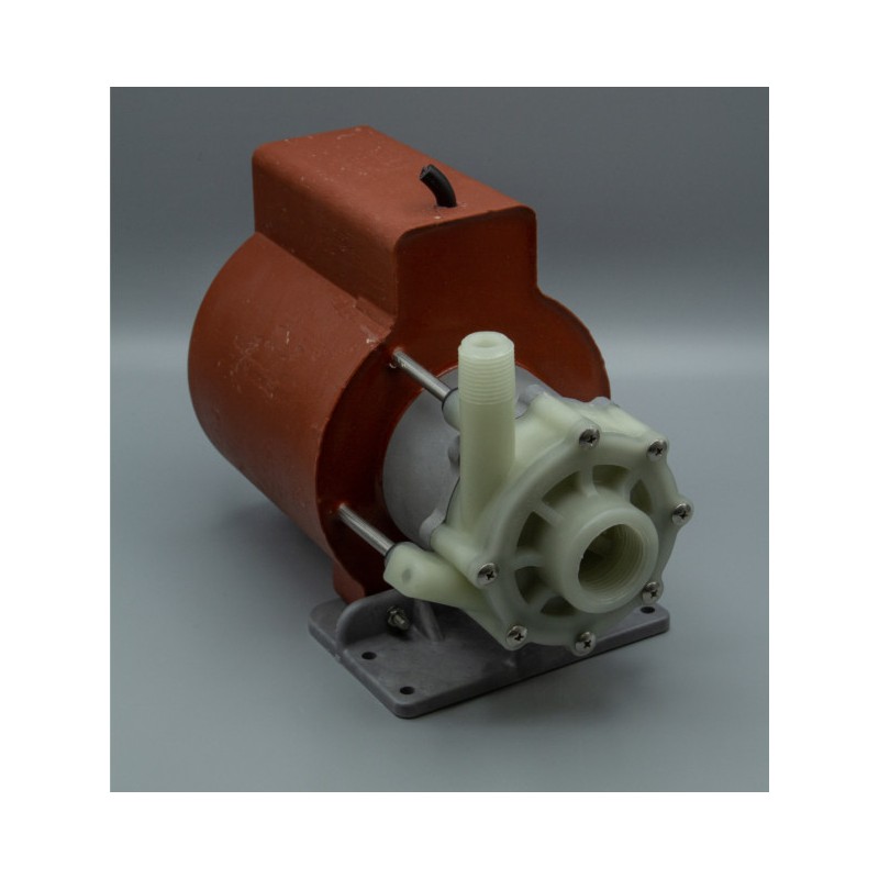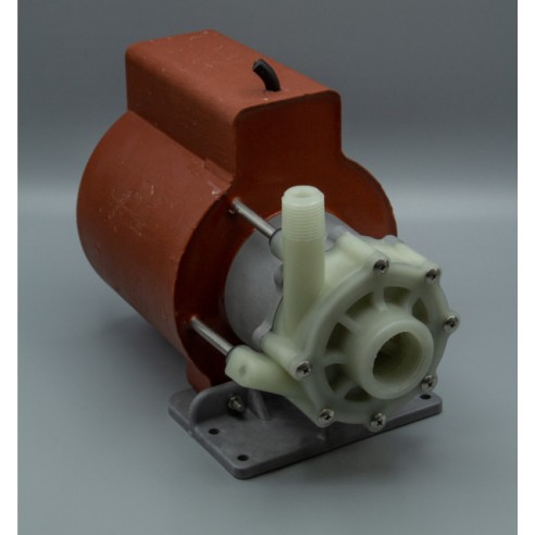 La bomba industrial LC-5C-MD de March Pump es una bomba centrífuga sumergible estadounidense de accionamiento magnético sin sello. Tiene capacidad para generar un caudal máximo de 15 galones por minuto a 2 pies (60 cm) y una altura máxima de 27 pies (11 psi). La bomba LC-5C-MD puede utilizarse sumergida o no. El extremo húmedo estándar (los materiales que entran en contacto con la solución) está compuesto de polipropileno, Buna N, acero inoxidable, cerámica e imán cerámico. Al sumergirse, el epoxi, el Noryl y el cable también entran en contacto con la solución. La conexión de entrada es una rosca hembra de 1 pulgada (2,54 cm) y la de salida es una rosca macho de 1/2 pulgada (1,27 cm). El motor estándar es monofásico de 115 V o 230 V y 0,125 HP, que puede funcionar a 50 o 60 Hz (existen diferencias de rendimiento entre las opciones de Hz). La presión interna máxima que la bomba puede tolerar es de 50 PSI y la temperatura máxima del líquido es de 54 Celsius (130 Fahrenheit). La bomba centrífuga de accionamiento magnético March LC-5C-MD es capaz de bombear agua dulce, agua salada y productos químicos suaves. Para determinar si la March LC-5C-MD es adecuada para su aplicación, póngase en contacto con March Pump.