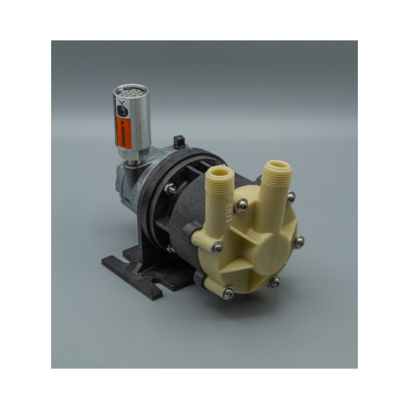 La MDK-MT3-AM industrial de March Pump es una bomba centrífuga de accionamiento magnético sin sello estadounidense, ideal para aplicaciones como la recirculación y transferencia de productos químicos. Tiene capacidad para generar un caudal máximo de 9 galones por minuto a 1 pie (30 cm) y una altura máxima de 28 pies (12 psi).