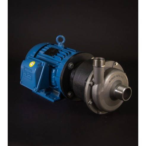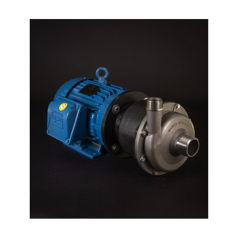 La bomba industrial TE-8S-MD de March Pump es una bomba centrífuga de accionamiento magnético sin sello, ideal para aplicaciones como recirculación y transferencia de productos químicos, así como para sistemas de depuración. Tiene capacidad para generar un caudal máximo de 120 galones por minuto a 20 pies (6 metros) y una altura máxima de 90 pies (39 psi).
