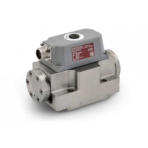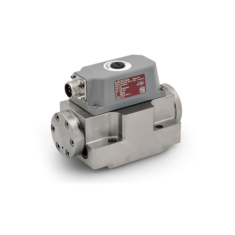 Las válvulas servo de control de flujo de la serie 72 son válvulas de aceleración para aplicaciones de 3 y preferentemente 4 vías. Son un diseño de alto rendimiento y dos etapas que cubre el rango de caudales nominales desde 95 hasta 225 l/min (25 a 60 gpm) con una caída de presión de válvula de 35 bar (500 psi) por tierra en el carrete. La etapa de salida es un carrete de centro cerrado y deslizamiento de cuatro posiciones. La etapa piloto es una doble tobera y aleteador simétrico, accionada por un motor de par seco de doble entregadura de aire. La retroalimentación mecánica de la posición del carrete la proporciona un muelle de voladizo