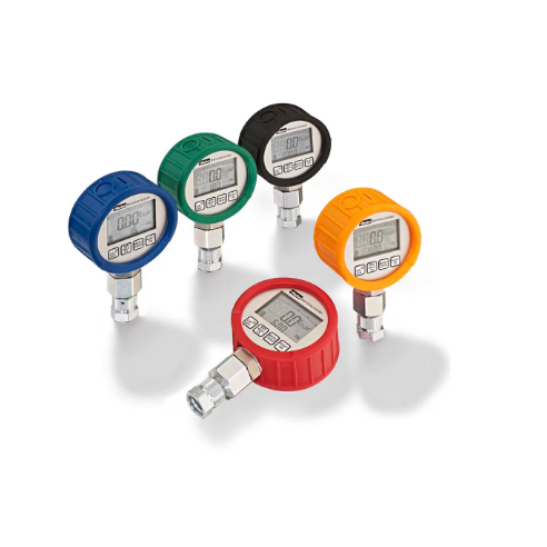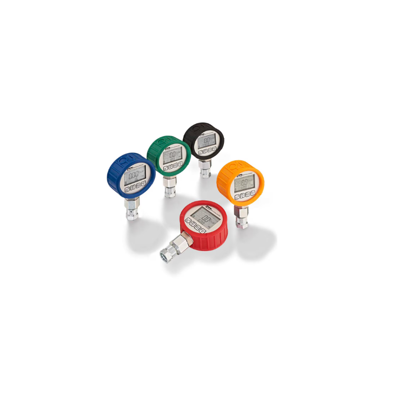 El SensoControl ServiceJunior de Parker es un manómetro digital con una capacidad de memoria mínima/máxima y una pantalla gráfica. Cuenta con una tasa de escaneo de 10 ms y dispone de cubiertas de colores correspondientes a los diferentes rangos de medida para lograr una identificación fácil.