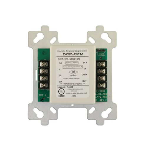 El Módulo de Zona Convencional Hochiki (DCP-CZM) está diseñado para su uso en un sistema analógico de alarma de incendios direccionable. Se pueden colocar hasta 127 dispositivos en un solo bucle SLC. La dirección del dispositivo se almacena de forma única en un dispositivo a bordo. El módulo permite que el panel interconecte y monitorice detectores convencionales de dos hilos o estaciones de atracción. Cada DCP-CZM transmite el estado de una zona de dispositivos (máximo 25 por zona) de vuelta al panel.