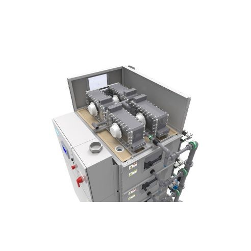Las celdas discretas se configuran eléctricamente en serie y las tuberías en paralelo, lo que permite un diseño sin transformadores y un fácil cambio de celdas, así como una celda con vida útil más larga.