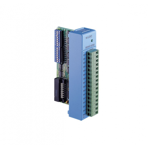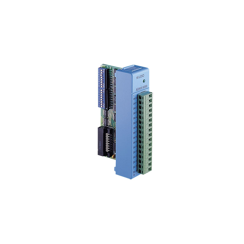 El ADAM-5050 cuenta con dieciséis canales de entrada / salida digitales. Cada canal se puede configurar de forma independiente para ser un canal de entrada o salida mediante el ajuste de su interruptor DIP. Las salidas digitales son interruptores de transistor de colector abierto que se pueden controlar desde el ADAM-5000. Los interruptores también se pueden usar para controlar